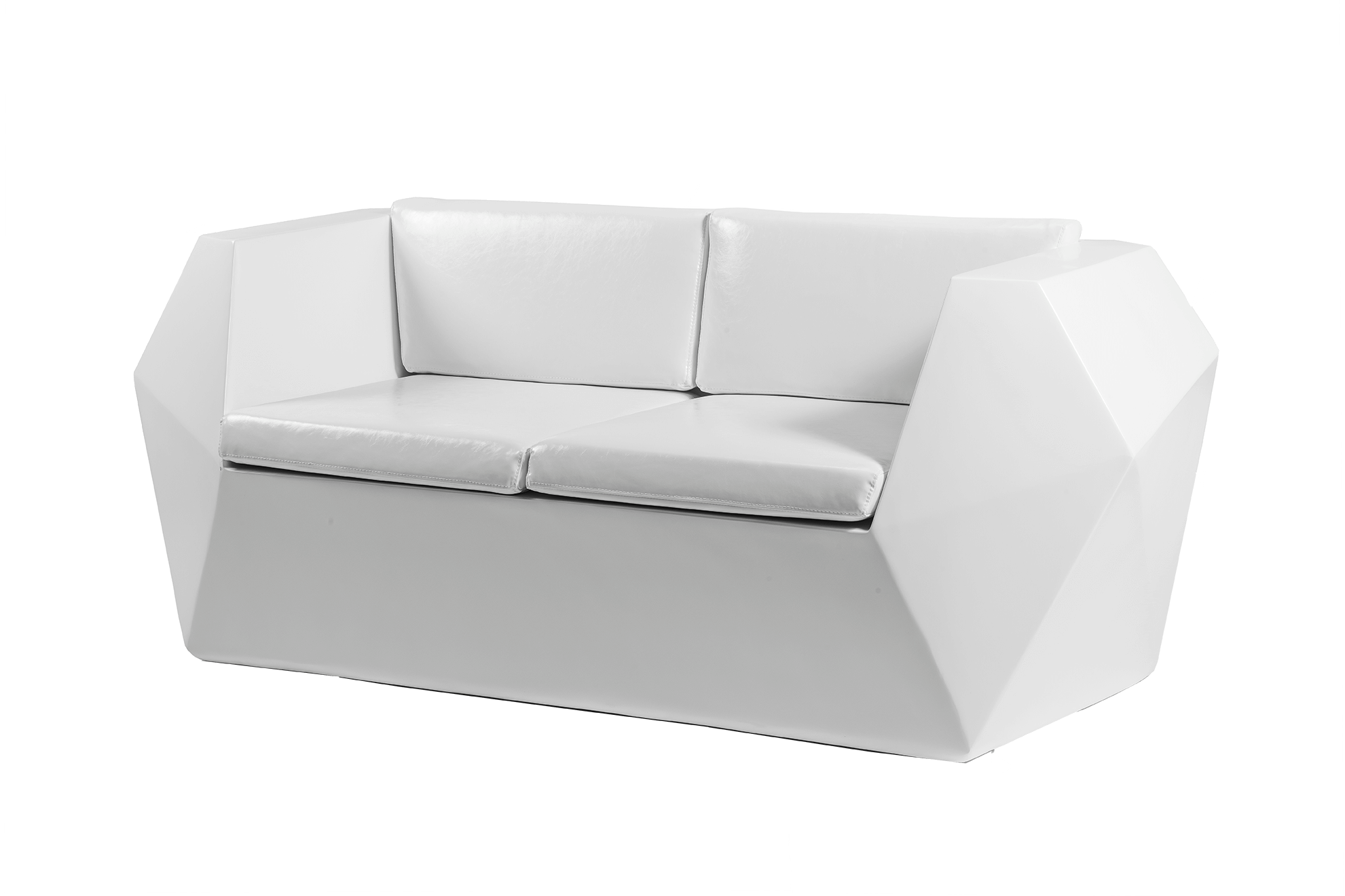 white leatherette three-seater