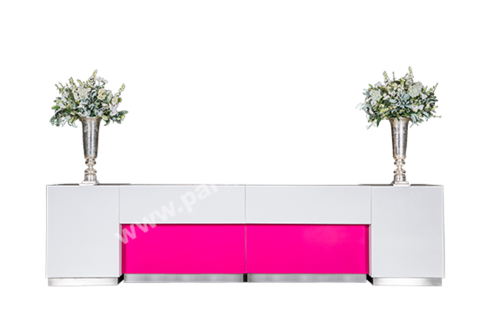 A bar from our Duplex loft-style furniture collection, characterised by clean aesthetic lines that enhance the impressive industrial look. It is a professional bar with a stainless steel construction clad on three sides with a glossy artificial stone slab, which is equipped with a stainless steel trench bar above the ground. The top is polished stainless steel with raised edges and conforms to professional bar standards. The extension is in the same glossy artificial stone finish as the bar counter and can be combined in different colours (white, black, grey, red, deep pink, light oak). The bars have locking feet with protective end caps against floor abrasion.  Duplex bars are variably assembled into rows and different shapes. Combination with other Duplex segments is possible. An inner white shelf for inventory and goods can be ordered for the inner empty space of the bar. This shelf is not included in the price of the bar.