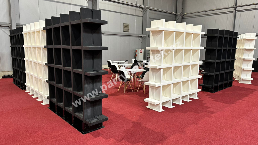 It is made of high quality polyethylene and comes with 16 separate shelves (each 40x40 cm). The shelf rack has a total height of 230 cm, width 230 cm, depth 40 cm.