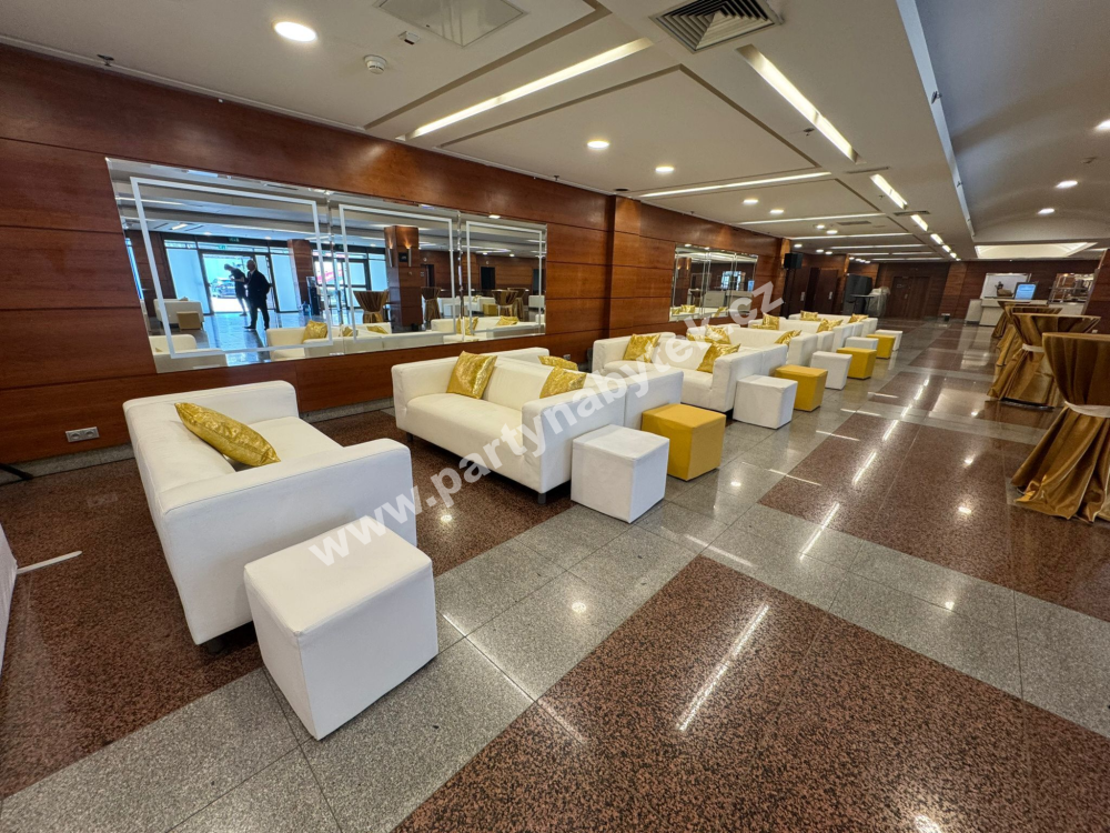 Čtvercový polštářek určený pro dekoraci pohovek a sedacích souprav. Povlak s metalickým povrchem s výplní směsi polyesteru a bavlny.