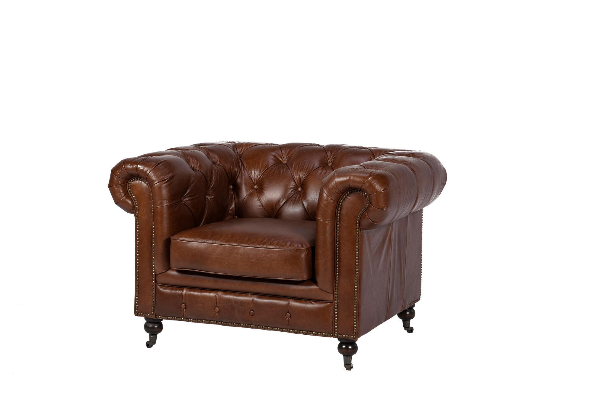 Křeslo vychází z naší exkluzivní kolekce Chesterfield. Pro všechny produkty z této řady je charakteristický styl staroanglického klubu gentlemanů. Jsou určeny zákazníkům, kteří se nebojí odlišovat a hledají luxus v každém detailu. Křesla jsou vyrobeny tradičním staroanglickým způsobem zpracování s vysokým podílem ruční práce. Nadčasová klasika působící noblesním dojmem ... dřevěné nohy, vzhled kůže a zdobné kovové nýtky po bocích. Bohaté čalounění vybranou tmavě hnědou hovězí kůží poskytne dokonalé pohodlí. Provedení s výrazným prošíváním zad a područek s pohledovými knoflíky jsou typickým znakem stylu Chesterfield a vytvářejí nepřehlédnutelný doplněk. Vysoké, hladce čalouněné sedáky spolu s pohodlnými vysokými područkami poskytují komfortní posezení. Celočalouněné provedení umožňuje umístit křeslo do volného prostoru. Doporučujeme kombinovat se stolky Whisky table, které umocňují celý dojem sestavy.