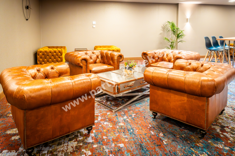 Křeslo vychází z naší exkluzivní kolekce Chesterfield. Pro všechny produkty z této řady je charakteristický styl staroanglického klubu gentlemanů. Jsou určeny zákazníkům, kteří se nebojí odlišovat a hledají luxus v každém detailu. Křesla jsou vyrobeny tradičním staroanglickým způsobem zpracování s vysokým podílem ruční práce. Nadčasová klasika působící noblesním dojmem ... dřevěné nohy, vzhled kůže a zdobné kovové nýtky po bocích. Bohaté čalounění vybranou tmavě hnědou hovězí kůží poskytne dokonalé pohodlí. Provedení s výrazným prošíváním zad a područek s pohledovými knoflíky jsou typickým znakem stylu Chesterfield a vytvářejí nepřehlédnutelný doplněk. Vysoké, hladce čalouněné sedáky spolu s pohodlnými vysokými područkami poskytují komfortní posezení. Celočalouněné provedení umožňuje umístit křeslo do volného prostoru. Doporučujeme kombinovat se stolky Whisky table, které umocňují celý dojem sestavy.