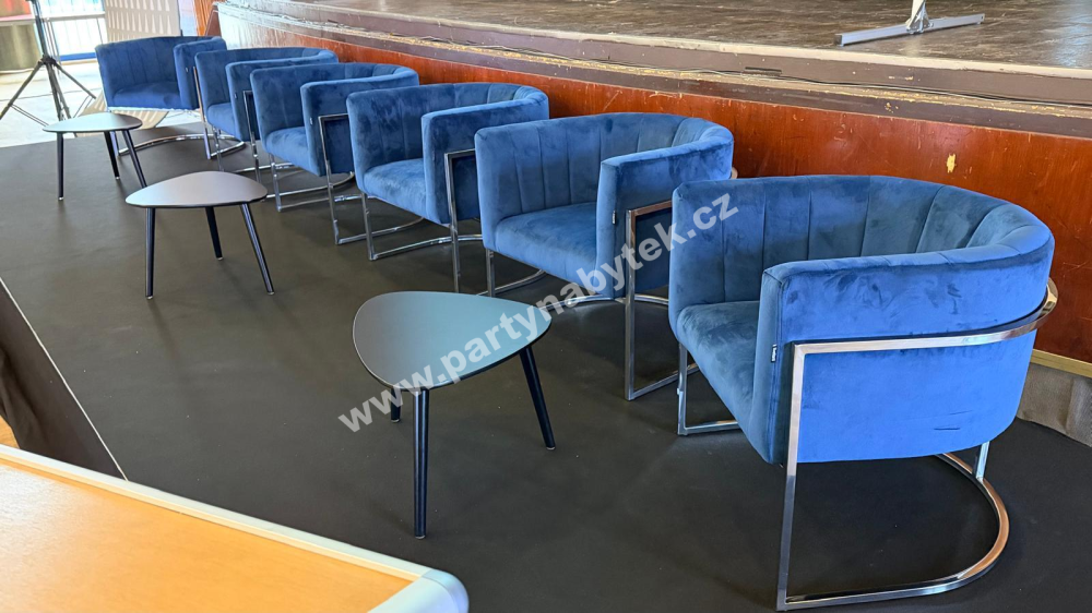 Sametové křeslo v glamour stylu starého Hollywoodu je navrženo v jednoduchém a elegantním stylu. Křeslo má vroubkovaně prošité opěradlo s nízkou opěrkou a je čalouněné kvalitní látkou z měkoučkého sametu. Díky štíhlé stříbrné podnoži z nerezové oceli je stabilní a zároveň stylové. Celočalouněné provedení umožňuje umístění do volného prostoru. Skvěle se hodí jak k našim lounge sestavám, tak na podium.
