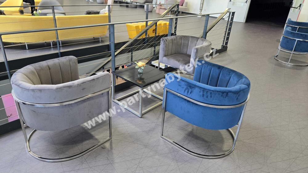 Sametové křeslo v glamour stylu starého Hollywoodu je navrženo v jednoduchém a elegantním stylu. Křeslo má vroubkovaně prošité opěradlo s nízkou opěrkou a je čalouněné kvalitní látkou z měkoučkého sametu. Díky štíhlé stříbrné podnoži z nerezové oceli je stabilní a zároveň stylové. Celočalouněné provedení umožňuje umístění do volného prostoru. Skvěle se hodí jak k našim lounge sestavám, tak na podium.
