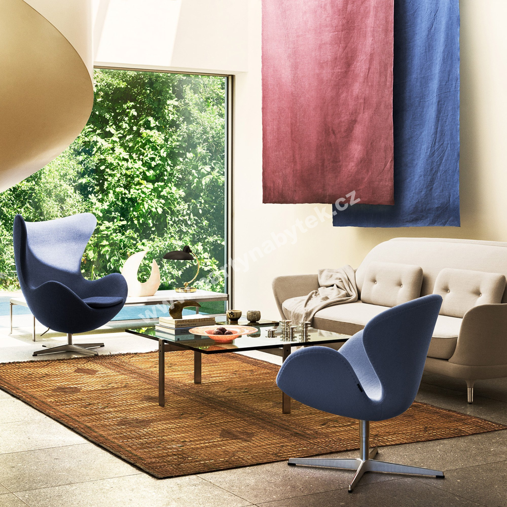 Arne Jacobsen navrhl v roce 1958 křeslo Swan pro vstupní halu a salonky hotelu SAS Royal v Kodani a od té doby se stalo designovou ikonou. Design neobsahuje žádné rovné linie, takže i přes svou jednoduchost a silný architektonický vzhled působí organicky a jemně. Pohodlné a zároveň extravagantně tvarované křeslo Swan je trvalou klasikou dánského designu a dokonalým ztělesněním liberálního způsobu života 60. let 20. století. Tvarovaná skořepina ze syntetického materiálu na otočné základně z leštěného hliníku ve tvaru hvězdy, s vrstvou studené pěny pokrývající skořepinu čalouněnou látkou.