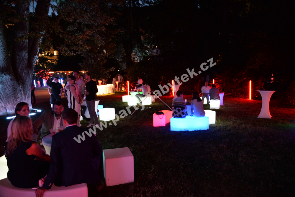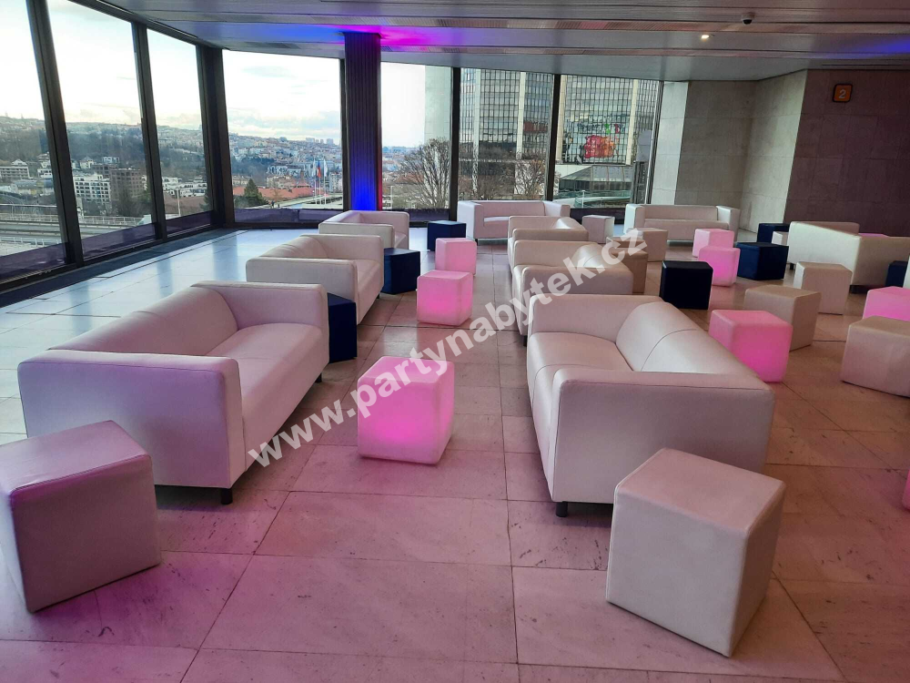 Krychle z bíle mléčného polyetylenu, která má všestranné použití jako stolek, taburet, lampa, svítící dekorace nebo podstavec. Příjemné a měkké světlo, vycházející z kostky, poskytuje orientační osvětlení, s dokonalým rozptylem světla, které umocní atmosféru sálu nebo zahrady. Kostka je doplněna LED podsvícením na dálkové ovládání, které umožňuje funkcemi různých barev a intenzity, svítí s vlastním zdrojem bez kabelu. Vhodná pro vnitřní i venkovní použití.
