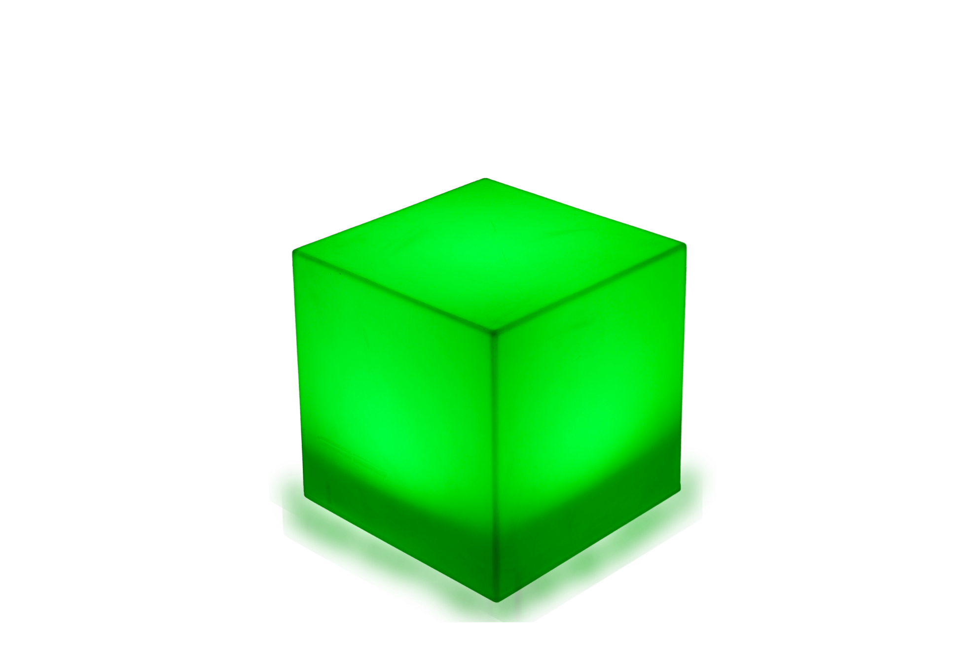 Krychle z bíle mléčného polyetylenu, která má všestranné použití jako stolek, taburet, lampa, svítící dekorace nebo podstavec. Příjemné a měkké světlo, vycházející z kostky, poskytuje orientační osvětlení, s dokonalým rozptylem světla, které umocní atmosféru sálu nebo zahrady. Kostka je doplněna LED podsvícením na dálkové ovládání, které umožňuje funkcemi různých barev a intenzity, svítí s vlastním zdrojem bez kabelu. Vhodná pro vnitřní i venkovní použití.