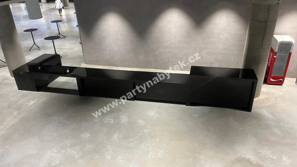 Stůl speciálně určený pro rauty, buffety, bary a pulty. Luxusní stůl ve špičkové kvalitě zpracování a použitých materiálů vyniká svojí jednoduchou linií. Minimalistický a čistý design dodá eleganci každé akci. Boční panelové nohy zajišťují mimořádnou stabilitu. Stůl je precizně zpracován kvalitní tuzemskou zakázkovou výrobou. Jedná se o dřevěný masiv potažený tvrzeným laminátem s povrchovou úpravou ve vysokém lesku. Čelo stolu je opatřeno neprůhlednou dělící přepážkou, která zabezpečí pohledové uzavření prostoru pod stolem, pro event. uložení materiálu. Přepážka je ze stejného materiálu ve vysokém lesku, jako celý stůl a tím působí kompaktně. Stoly mají ochranné koncovky nohou, proti oděru podlahy.