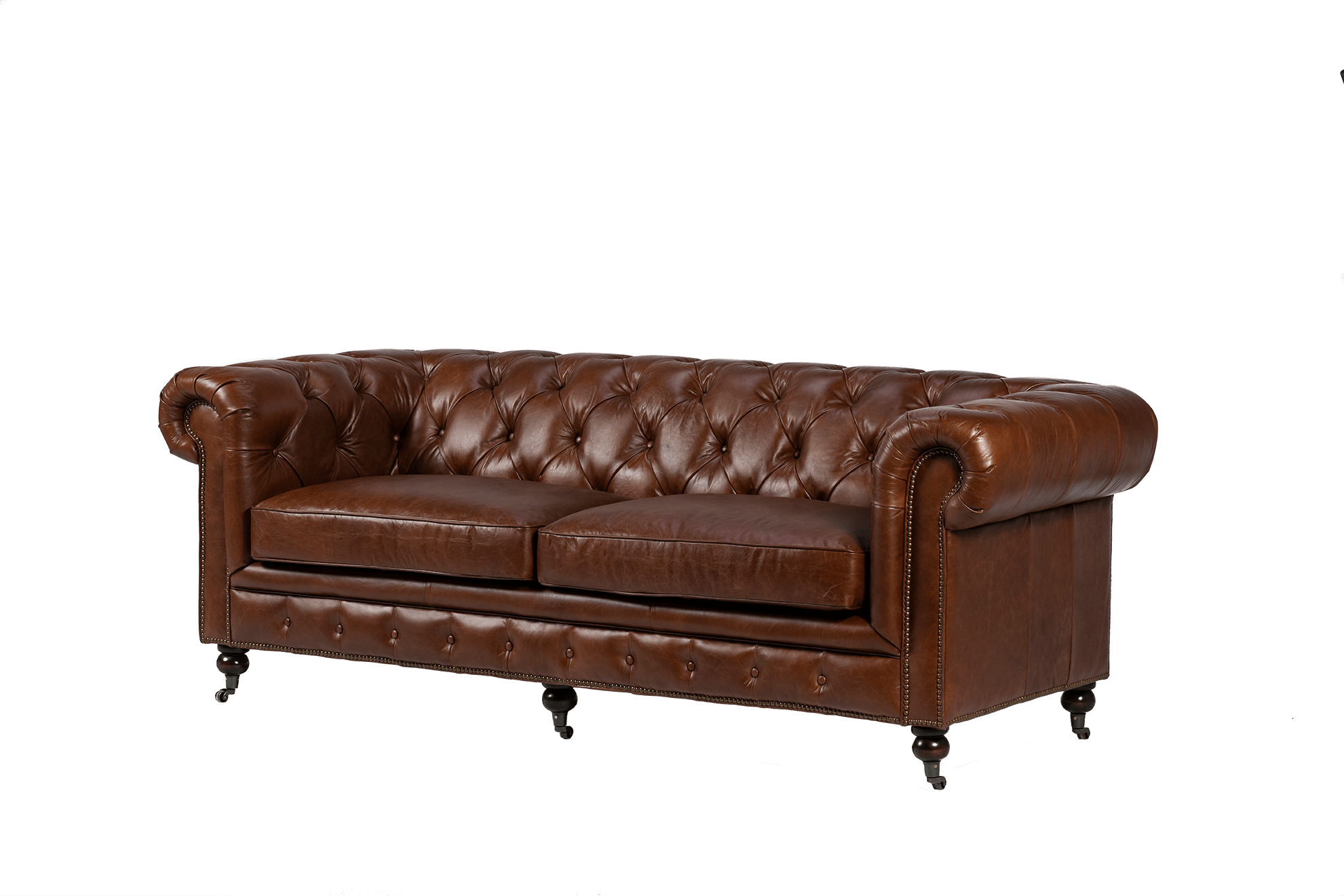 Tato pohovka vychází z naší exkluzivní kolekce Chesterfield. Pro všechny produkty z této řady je charakteristický styl staroanglického klubu gentlemanů. Jsou určeny zákazníkům, kteří se nebojí odlišovat a hledají luxus v každém detailu. Pohovky jsou vyrobeny tradičním staroanglickým způsobem zpracování s vysokým podílem ruční práce. Nadčasová klasika působící noblesním dojmem ... dřevěné nohy, vzhled kůže a zdobné kovové nýtky po bocích. Bohaté čalounění vybranou tmavě hnědou hovězí kůží poskytne dokonalé pohodlí. Provedení s výrazným prošíváním zad a područek s pohledovými knoflíky jsou typickým znakem stylu Chesterfield a vytvářejí nepřehlédnutelný doplněk. Vysoké, hladce čalouněné sedáky spolu s pohodlnými vysokými područkami poskytují komfortní posezení. Celočalouněné provedení umožňuje umístit pohovku do volného prostoru. Doporučujeme kombinovat se stolky Whisky table, které umocňují celý dojem sestavy.