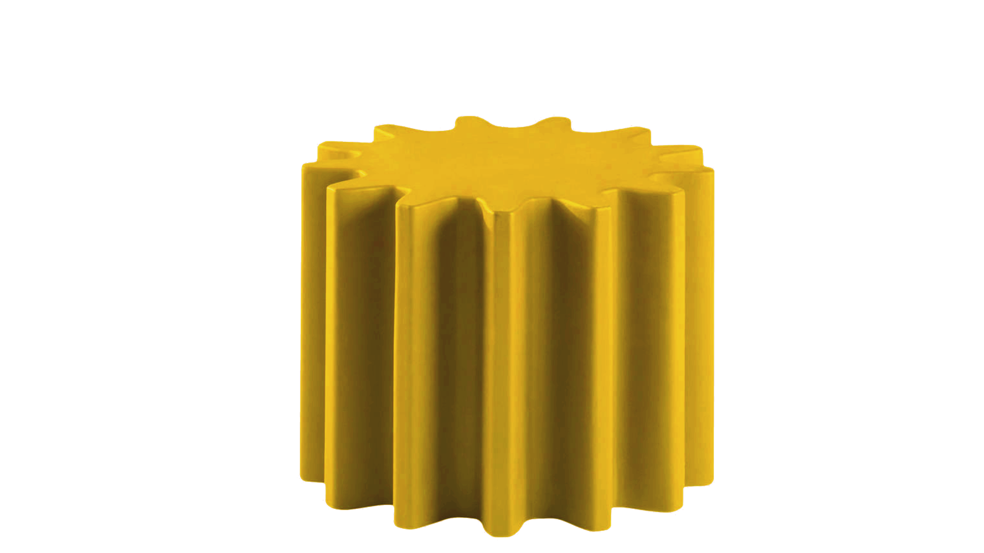 Multifunkční taburet / stolek z velmi kvalitního barevného polyetylenu inspirovaný typickým tvarem ozubeného kola. Jednotlivé kousky jsou navíc modulové, zapadnou do sebe jako kolečka motoru a vytvoří tak hravé a barevné kompozice. Tento designový prvek je z dílny proslulého italského Studia Slide. Značka již od roku 2002 přetváří nábytek v malá umělecká díla a je jednou z nejdynamičtějších skupin ve světě tvorby nábytku.
