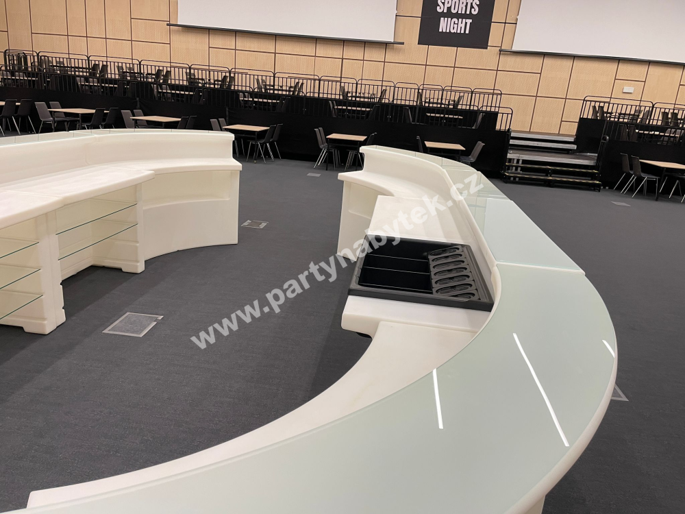 Skleněná police určená do vnitřního prostoru rovného dílu Break baru, pro ukládání inventáře, materiálů a pomůcek. Police je z tvrzeného skla 6 mm., její nosnost je max. 15 kg, není tedy určena pro uložení těžkých předmětů, přepravek a láhví. Do jednoho dílu baru se vejdou 1-4 police, při max. počtu 4 polic je výška rozestupu mezi nimi 15 cm.