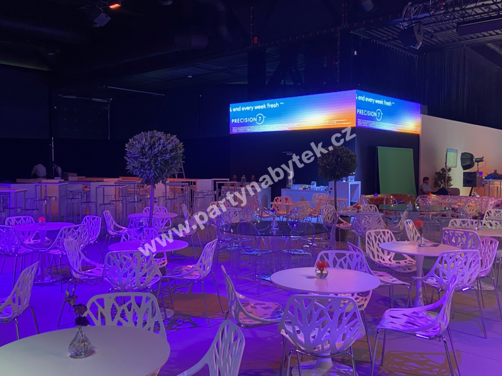 Moderní designové židle vyrobené z příjemného polypropylenu. Díky děrovanému skeletu v designu pavoučí sítě se skvěle hodí, jako nevšední doplněk originálních akcí a interiérů. Kromě svého vzhledu vynikají skvělou ergonomií a vysokým komfortem sezení. Díky kombinaci chromového rámu a čtyřem do široka rozkročeným nožkám se jedná o velmi stabilní židle.
